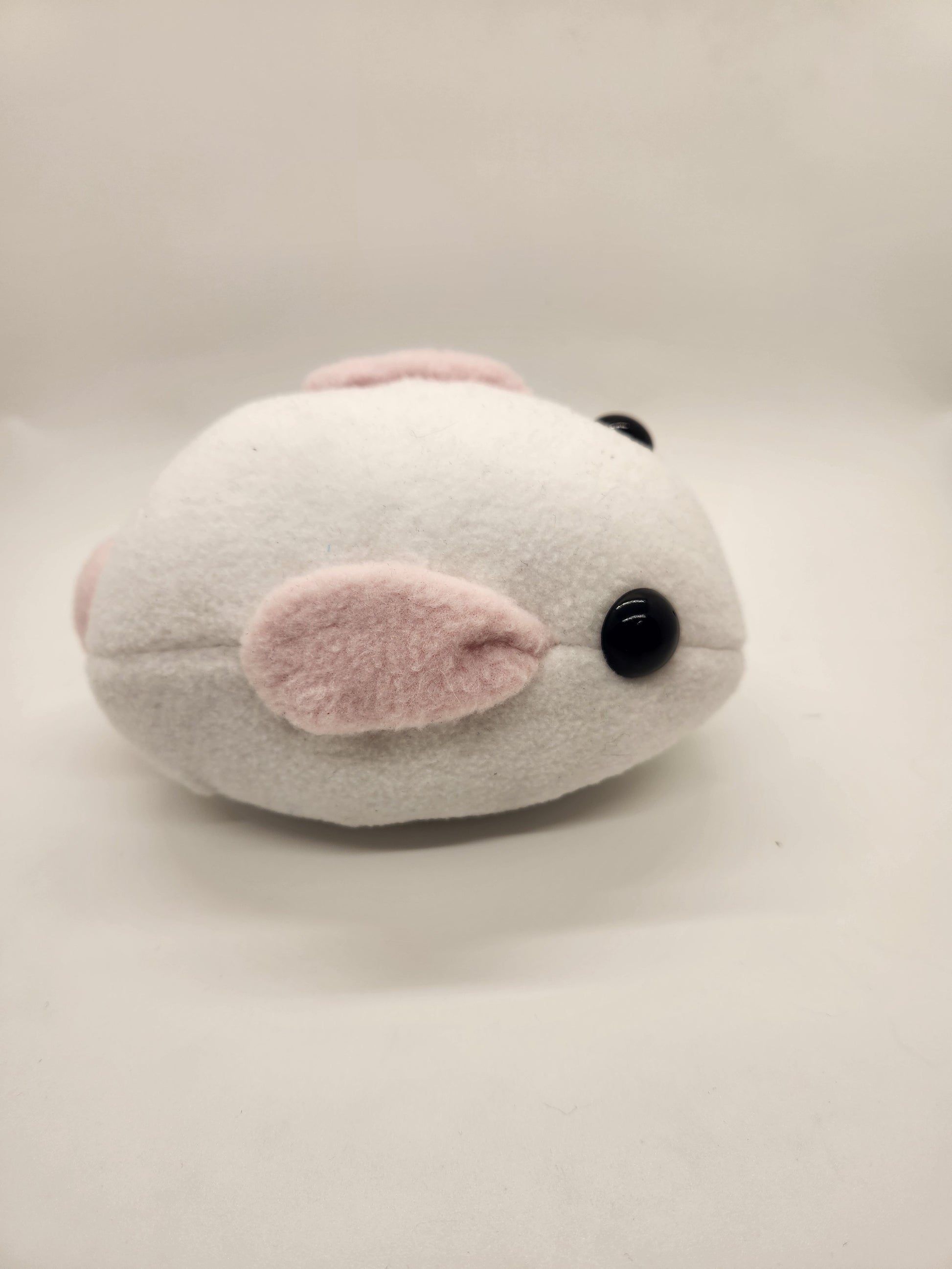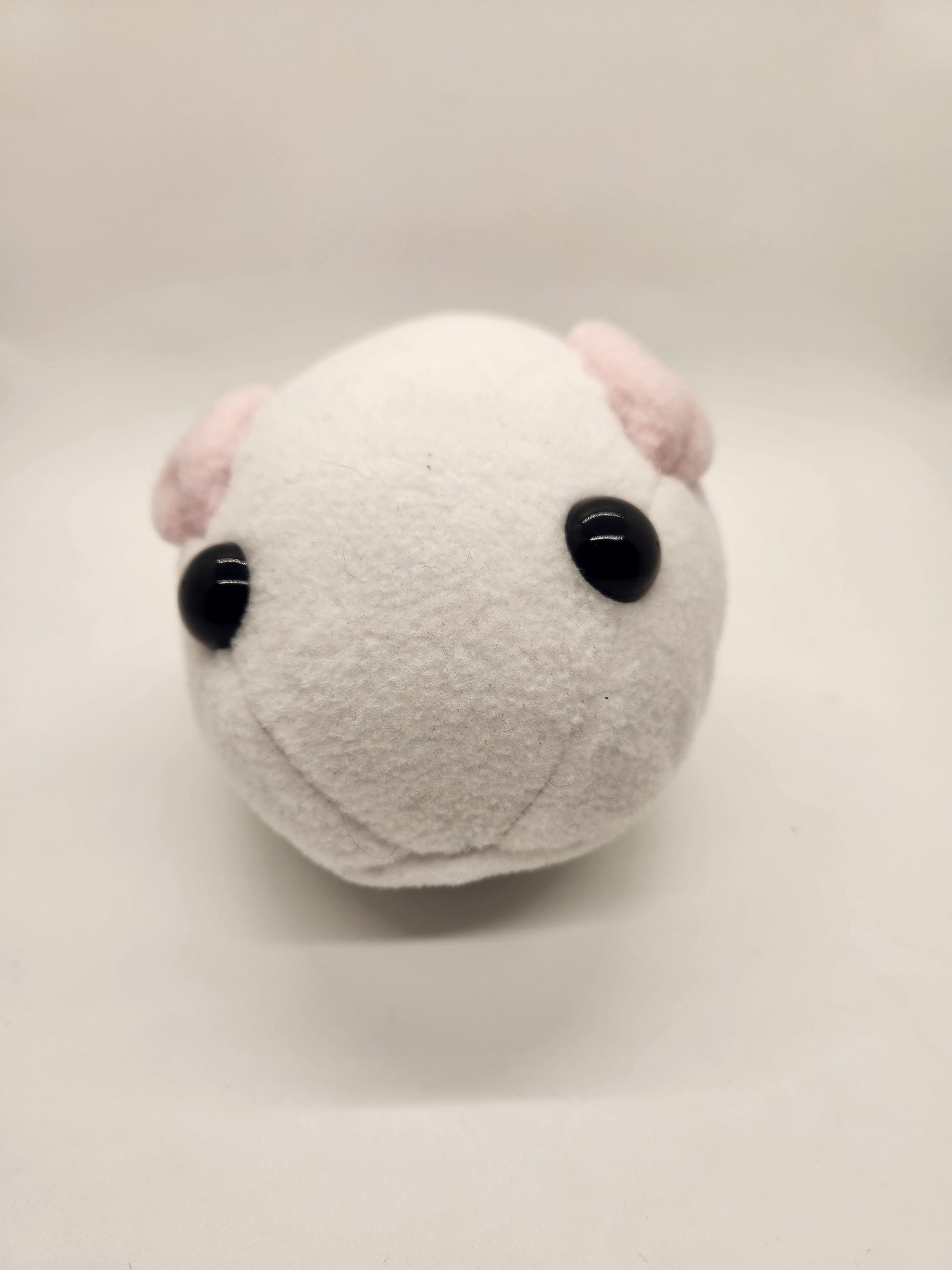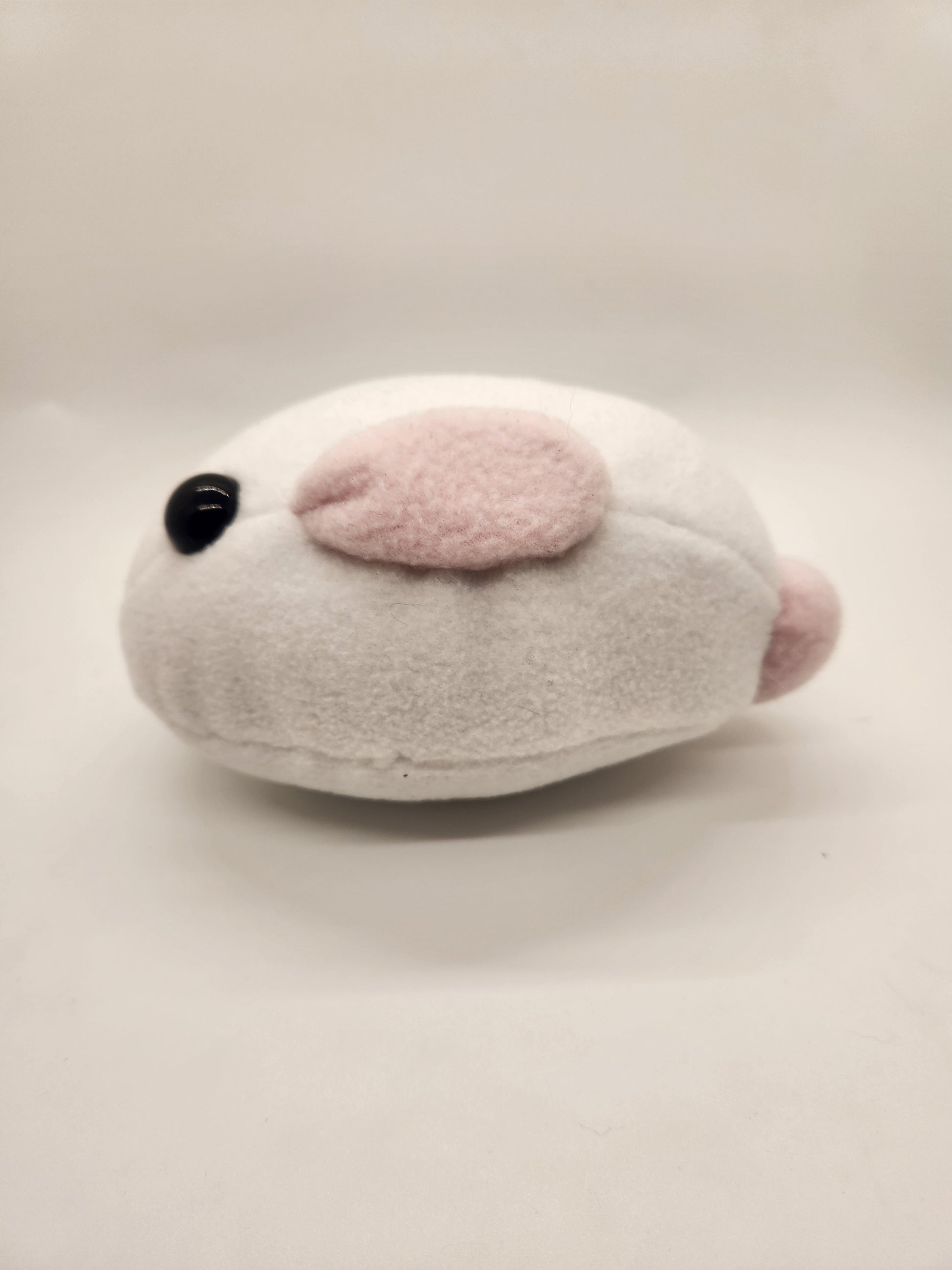 Cute little usagi manju (rabbit bun) plush made from antipill fleece, polyfil stuffing, and plastic safety eyes.